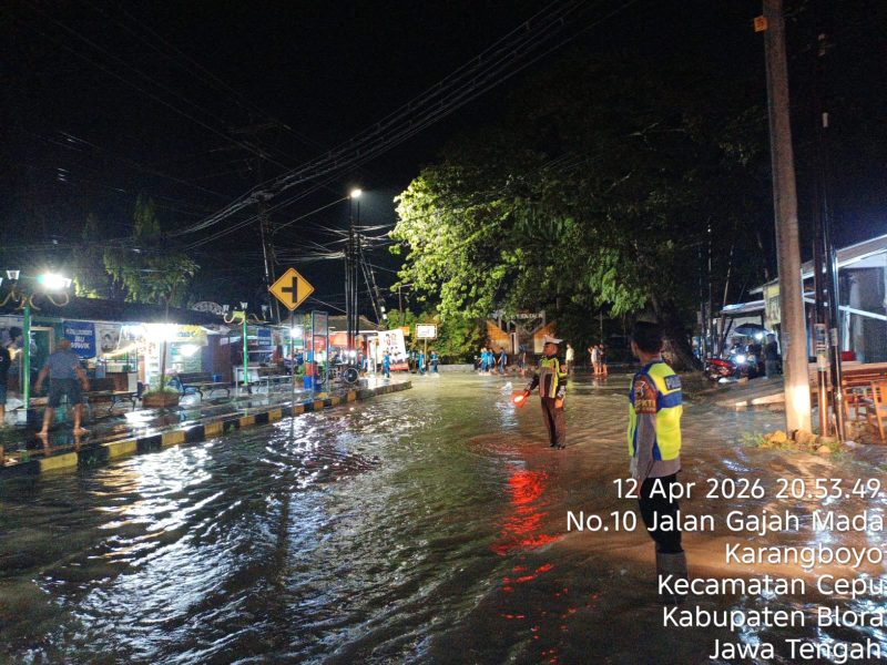 Blora, – Curah hujan yang tinggi dengan durasi cukup lama pada Minggu (12/04/2026) sore hingga malam hari menyebabkan sejumlah wilayah di Kecamatan Cepu, Kabupaten Blora, tergenang air. Luapan air dipicu oleh drainase yang tidak mampu menampung debit hujan serta meluapnya Sungai Ngareng.