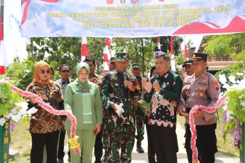 BLORA – Kodim 0721/Blora secara resmi menutup program TNI Manunggal Membangun Desa (TMMD) Sengkuyung Tahap III Tahun Anggaran 2025 di Desa Kepoh, Kecamatan Jati, Kabupaten Blora, Jawa Tengah. Upacara penutupan berlangsung di lapangan desa setempat pada Kamis (21/8/2025) dengan Inspektur Upacara Dandim 0721/Blora, Letkol Inf Agung Cahyono, S.Sos., M.Han.