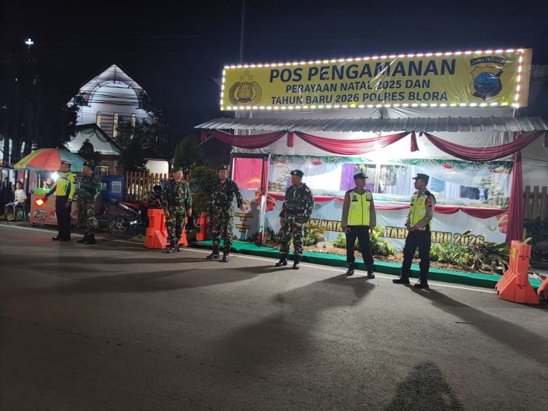 Blora,– Menjelang puncak peringatan Natal 2025, jajaran Polres Blora terus meningkatkan intensitas pengamanan di sejumlah gereja prioritas. Personel yang tergabung dalam Pos Pam Gereja Willibrordus Cepu melakukan pemantauan ketat serta pengaturan arus lalu lintas guna memastikan situasi kamtibmas tetap terkendali, Selasa (23/12/2025) malam.