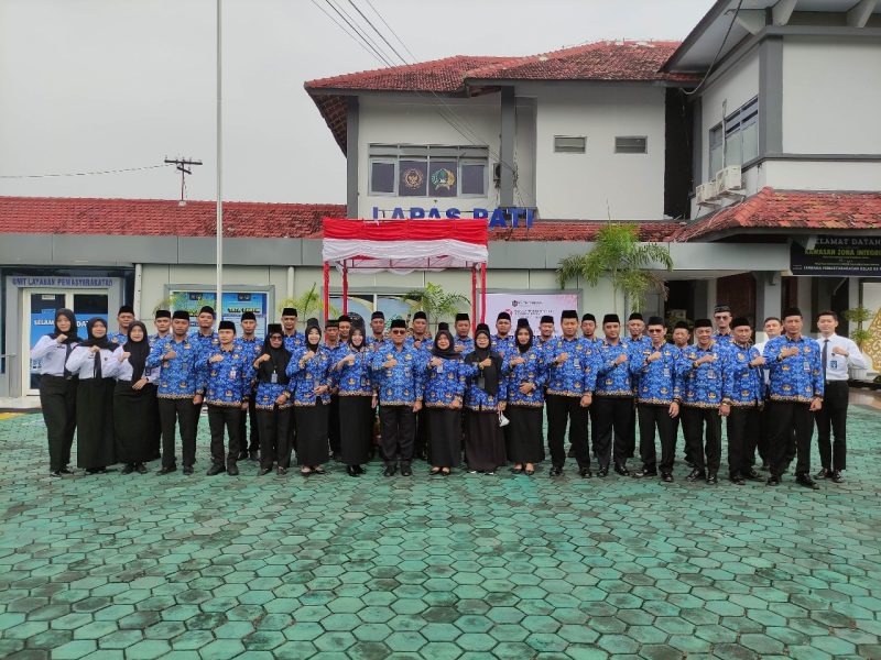 Pati – Lembaga Pemasyarakatan (Lapas) Kelas IIB Pati melaksanakan upacara peringatan Hari Sumpah Pemuda ke-97 pada Selasa (28/10). Upacara berlangsung khidmat di halaman Lapas dan diikuti oleh seluruh pejabat struktural serta pegawai. Dengan mengusung tema “Pemuda Pemudi Bergerak, Indonesia Bersatu”, kegiatan ini menjadi momentum untuk menanamkan kembali semangat persatuan dan gotong royong di lingkungan kerja, khususnya dalam menjalankan tugas pengabdian di bidang pemasyarakatan.