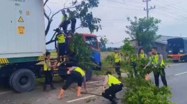 Polsek Tayu Sigap Tangani Pohon Tumbang di Jalur Pati–Tayu, Arus Lalin Kembali Lancar