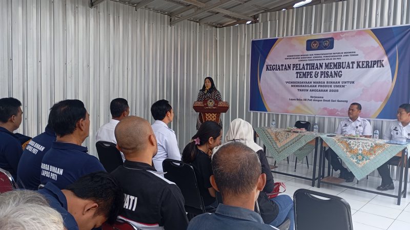 Pati– Lembaga Pemasyarakatan (Lapas) Kelas IIB Pati menggelar kegiatan pembukaan pelatihan pembuatan tempe, tempe keripik, dan keripik pisang bagi Warga Binaan Pemasyarakatan (WBP). Kegiatan ini merupakan bagian dari program pembinaan kemandirian yang bertujuan untuk membekali WBP dengan keterampilan produktif dan bernilai ekonomi. Pelatihan dilaksanakan di aula kegiatan kerja Lapas Pati dan menghadirkan instruktur dari Omah Sari Agung sebagai mitra pelaksana(04/11).