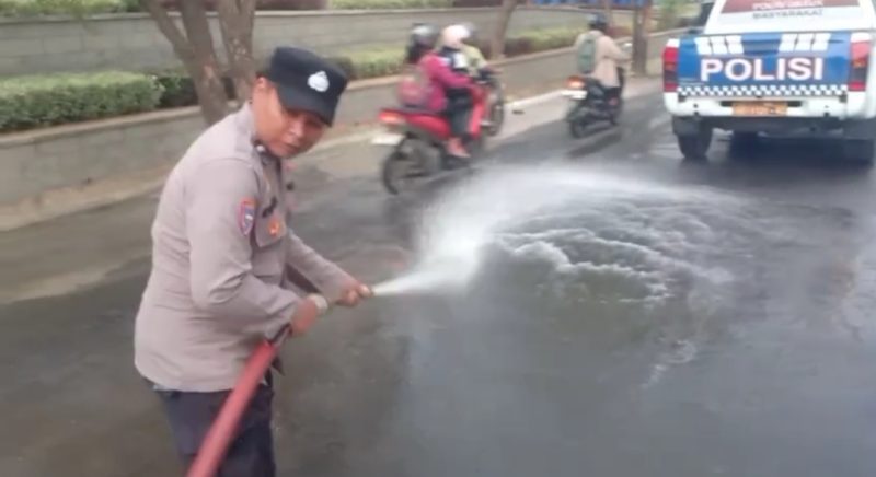 Warga yang melihat kejadian tersebut langsung melaporkan kepada Polsek Pati Kota dan Polresta Pati. Petugas Polsek Pati Kota bersama Satlantas Polresta Pati segera mendatangi lokasi, melakukan pengaturan lalu lintas, sterilisasi area, serta berkoordinasi dengan Damkar Kabupaten Pati agar dilakukan pembersihan menggunakan air dan detergen.