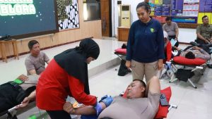 BLORA, – Sebanyak 100 personel Kepolisian Resor (Polres) Blora mengikuti kegiatan Bakti Kesehatan donor darah di Aula Aryaguna Polres Blora, dalam rangka memperingati Hari Palang Merah Indonesia (PMI) Nasional. Kegiatan kemanusiaan ini diselenggarakan atas kerja sama Sidokkes Polres Blora dengan Palang Merah Indonesia (PMI) Kabupaten Blora.