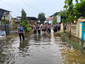 Pati – Jajaran Polsek Batangan bersama personel gabungan dari Sat Samapta, Satlantas, dan Ditpolairud Polresta Pati terus memantau perkembangan banjir di sejumlah titik wilayah Kecamatan Batangan, Kabupaten Pati, Senin (27/10/2025) pukul 14.00 WIB hingga selesai. Pemantauan dilakukan untuk memastikan situasi tetap aman dan membantu warga terdampak banjir.