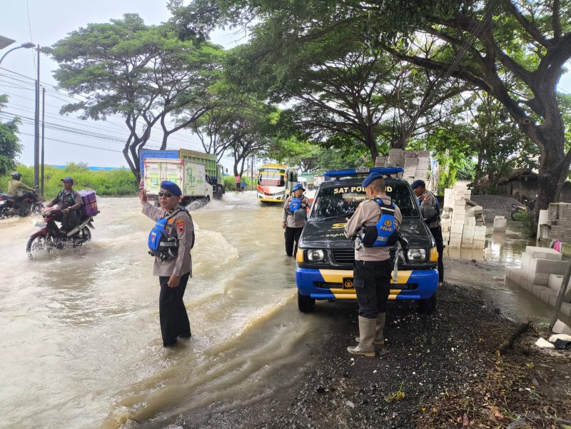 Pati – Jajaran Polsek Batangan bersama personel gabungan dari Sat Samapta, Satlantas, dan Ditpolairud Polresta Pati terus memantau perkembangan banjir di sejumlah titik wilayah Kecamatan Batangan, Kabupaten Pati, Senin (27/10/2025) pukul 14.00 WIB hingga selesai. Pemantauan dilakukan untuk memastikan situasi tetap aman dan membantu warga terdampak banjir.