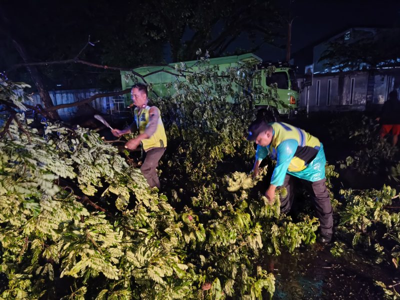 Pati – Hujan deras disertai angin kencang mengakibatkan sebuah pohon trembesi tumbang dan melintang di Jalan Raya Pati–Tayu, tepatnya di depan Pabrik Gula Pakis Baru, Desa Pakis, Kecamatan Tayu, Sabtu malam (10/1/2026) sekitar pukul 19.15 WIB. Peristiwa tersebut sempat menyebabkan arus lalu lintas tersendat selama kurang lebih 30 menit.