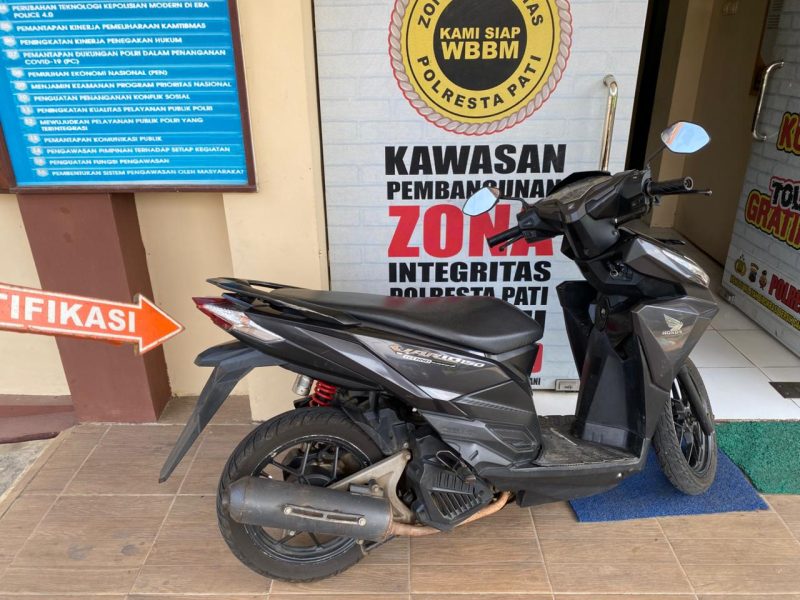 AKP Suntoro menjelaskan barang bukti yang berhasil diamankan dari tangan tersangka antara lain 1 unit sepeda motor Honda Vario warna hitam doff, 1 lembar STNK, 1 unit HP Realme Narzo 50i warna hijau, 1 helm warna pink merek INK, serta 1 unit HP Oppo A57 yang digunakan tersangka berkomunikasi dengan korban.