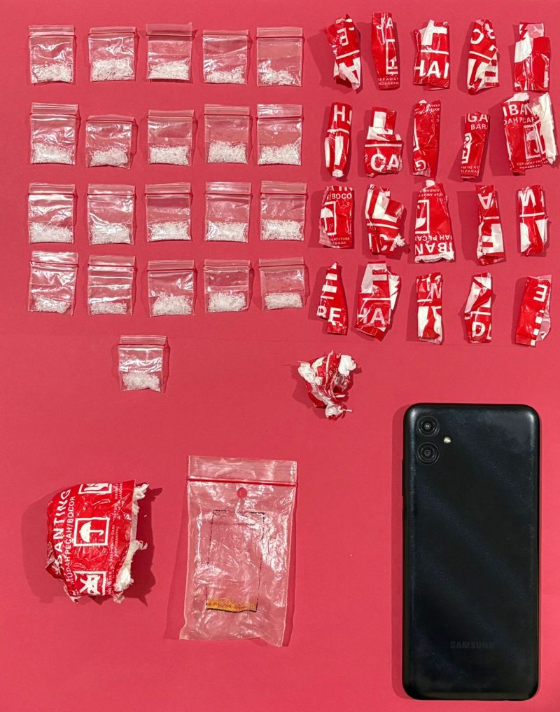 Dari hasil penggeledahan di lokasi, petugas menemukan 21 bungkus plastik klip berisi serbuk kristal sabu yang dibungkus tisu dan dilakban merah. Selain itu, polisi juga mengamankan satu unit handphone yang diduga digunakan tersangka untuk berkomunikasi dengan jaringan pembeli maupun pemasok.