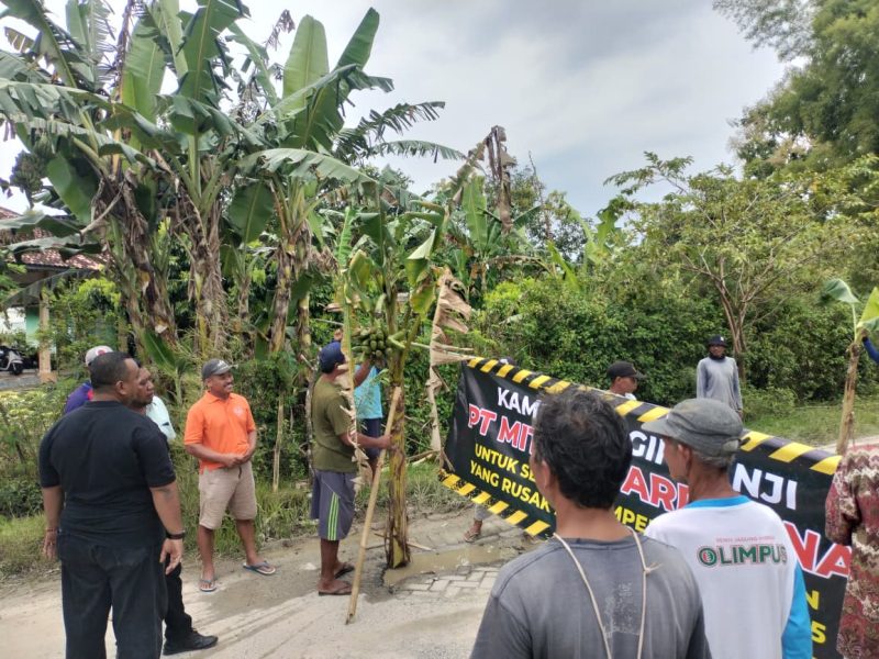 Pantauan di lokasi, warga sempat menanam pohon pisang dan memasang portal bambu di tengah jalan sebagai bentuk protes. Warga menuding aktivitas truk molen pada proyek senilai Rp 27,9 miliar yang bersumber dari APBN tahun 2025 tersebut telah merusak infrastruktur jalan desa mereka tanpa ada upaya perbaikan dari pihak kontraktor.