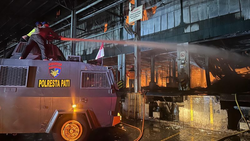 Pati – Kebakaran hebat melanda gudang Pabrik PT Dua Kelinci di Dukuh Lumpur, Desa Bumirejo, Kecamatan Margorejo, Senin (1/12/2025) sekira pukul 19.45 WIB. Laporan pertama kejadian ini masuk melalui Call Center 110, sebelum kemudian ditindaklanjuti cepat oleh Pamapta Polresta Pati yang langsung bergerak menuju lokasi. Api diketahui bermula dari gudang snack kemasan siap jual dan dengan cepat merembet ke gudang bahan baku berisi tepung serta plastik.