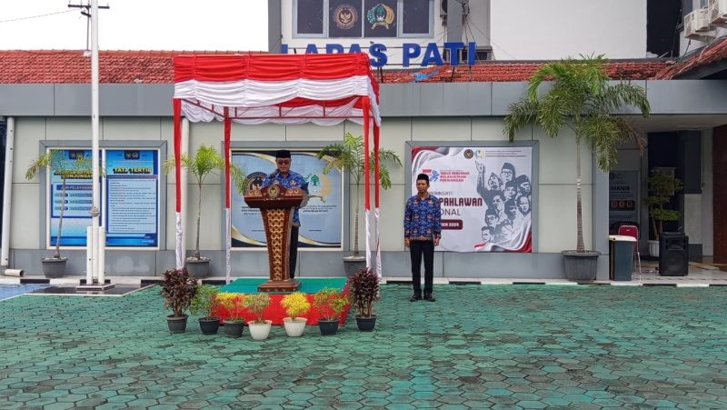 Pati- Lapas Kelas IIB Pati menggelar upacara peringatan Hari Pahlawan Tahun 2025 dengan khidmat di halaman lapas pada Senin (10/11). Upacara dipimpin langsung oleh Kalapas Pati, Suprihadi, dan diikuti seluruh jajaran pegawai. Mengusung tema “Pahlawanku Teladanku, Terus Bergerak Melanjutkan Perjuangan,” kegiatan ini menjadi momentum untuk meneladani nilai perjuangan dan semangat pantang menyerah para pahlawan bangsa.