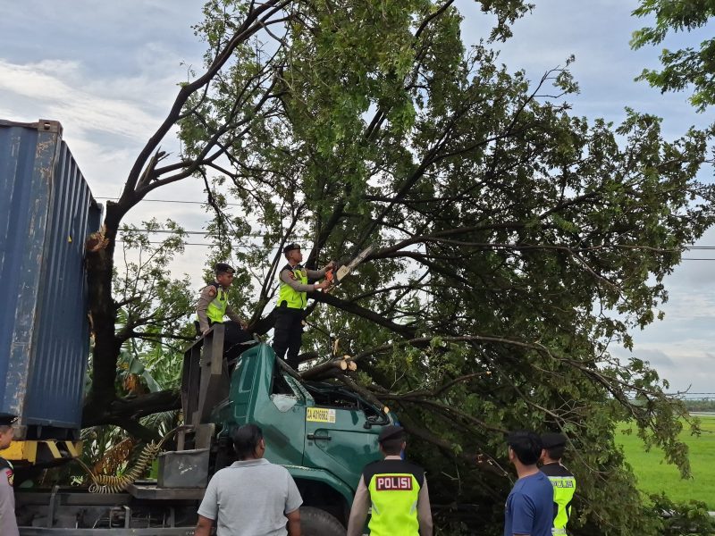 Sigap di Tengah Ancaman, Sat Samapta Polresta Pati Evakuasi Pohon Trembesi Tumbang di Jalur Lingkar Selatan
