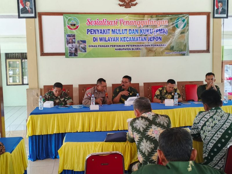 Blora,- Dinas Pangan Pertanian Peternakan Dan Perikanan(DP4) Kab.Blora melakukan sosialisasi tentang bahaya Penyakit Mulut dan Kuku (PMK) yang bertempat di Pendopo Kecamatan Jepon. Kamis ( 02/10/2025).