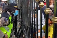 Pati – Aksi simpatik personel polisi wanita (Polwan) Polresta Pati terlihat di sela pengamanan sidang paripurna hak angket paripurna Bupati Pati, Jumat (31/10/2025) sekitar…