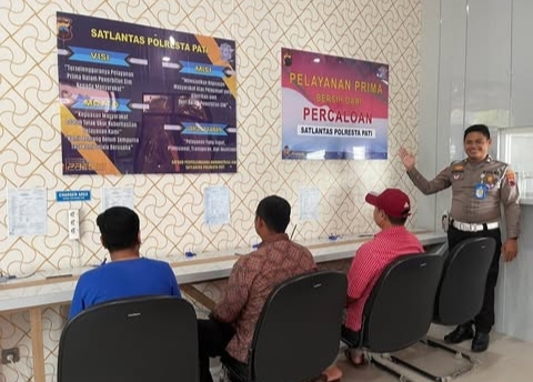 Pati, Rabu 18 Februari 2026 – Upaya meningkatkan kualitas pelayanan publik terus dilakukan Satlantas Polresta Pati melalui program Polantas Menyapa yang digelar di area pelayanan SIM (Satpas). Kegiatan ini menghadirkan edukasi langsung kepada masyarakat mengenai seluruh tahapan pembuatan SIM baru, sekaligus menegaskan komitmen pelayanan yang humanis dan bebas pungutan liar.