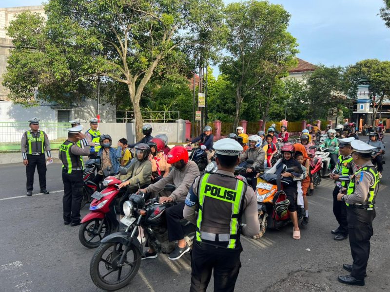 Pati – Satuan Lalu Lintas Polresta Pati kembali menggecarkan edukasi keselamatan berkendara dengan turun langsung membagikan leaflet dan stiker kepada para pengendara di dua titik strategis, yakni TL Randukuning dan TL Bleber, Jumat (28/11) pagi. Kegiatan ini menjadi salah satu rangkaian awal Operasi Zebra Candi 2025 yang secara serentak digelar di wilayah Jawa Tengah.